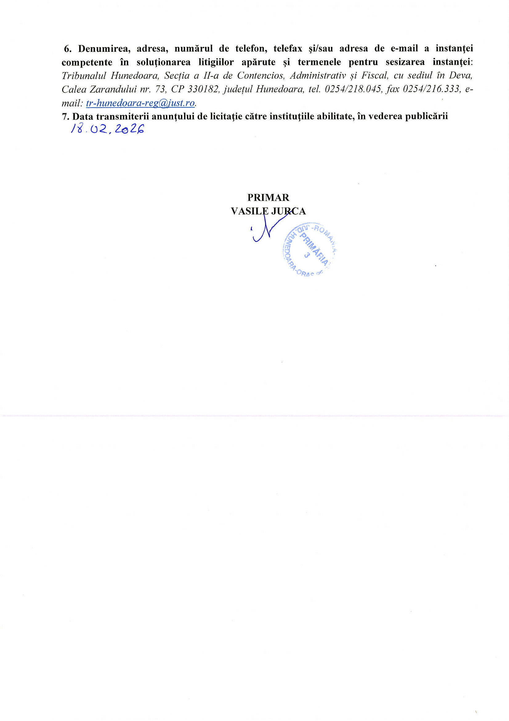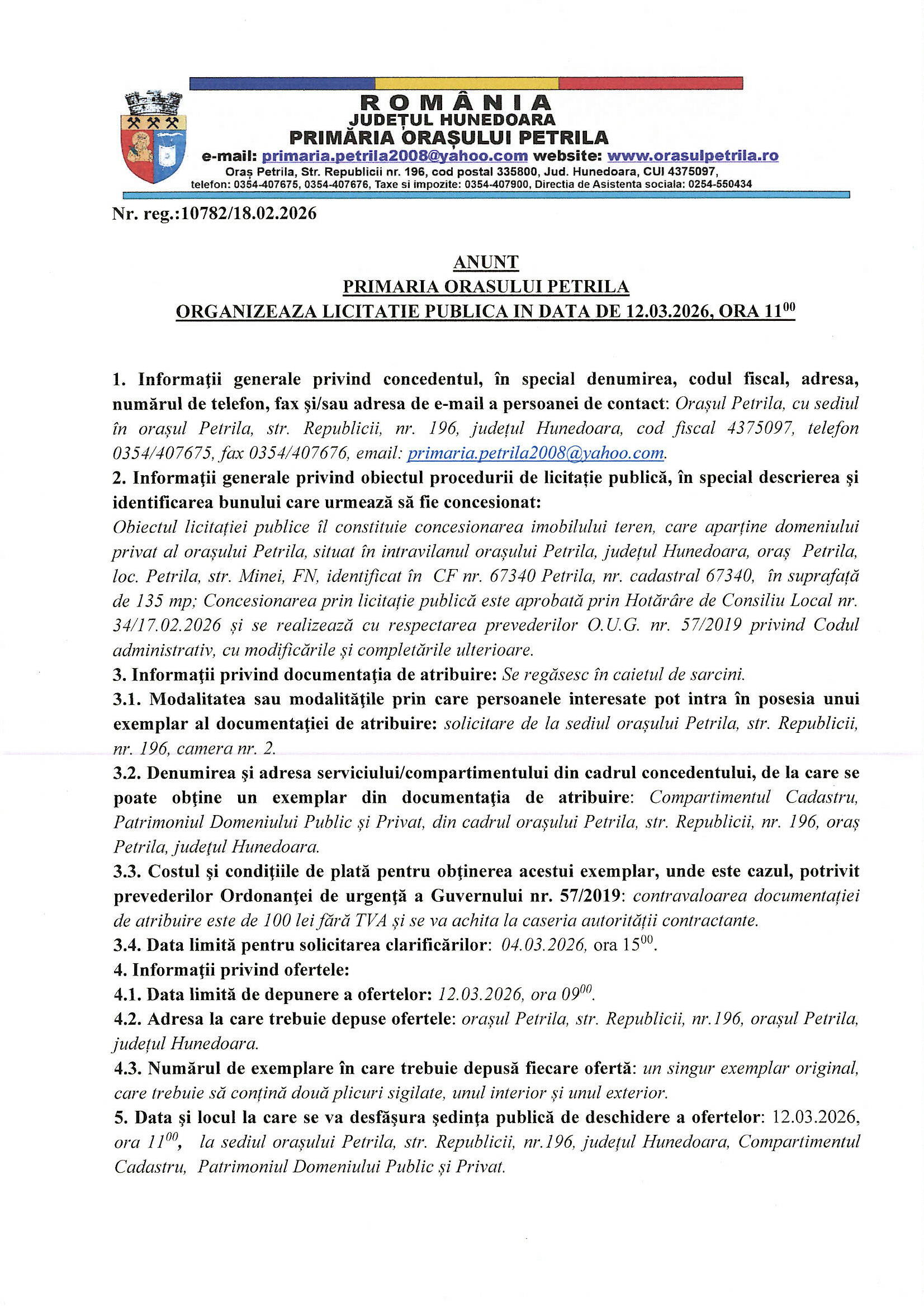Licitatie publica 12.03.2026, ora 11.00