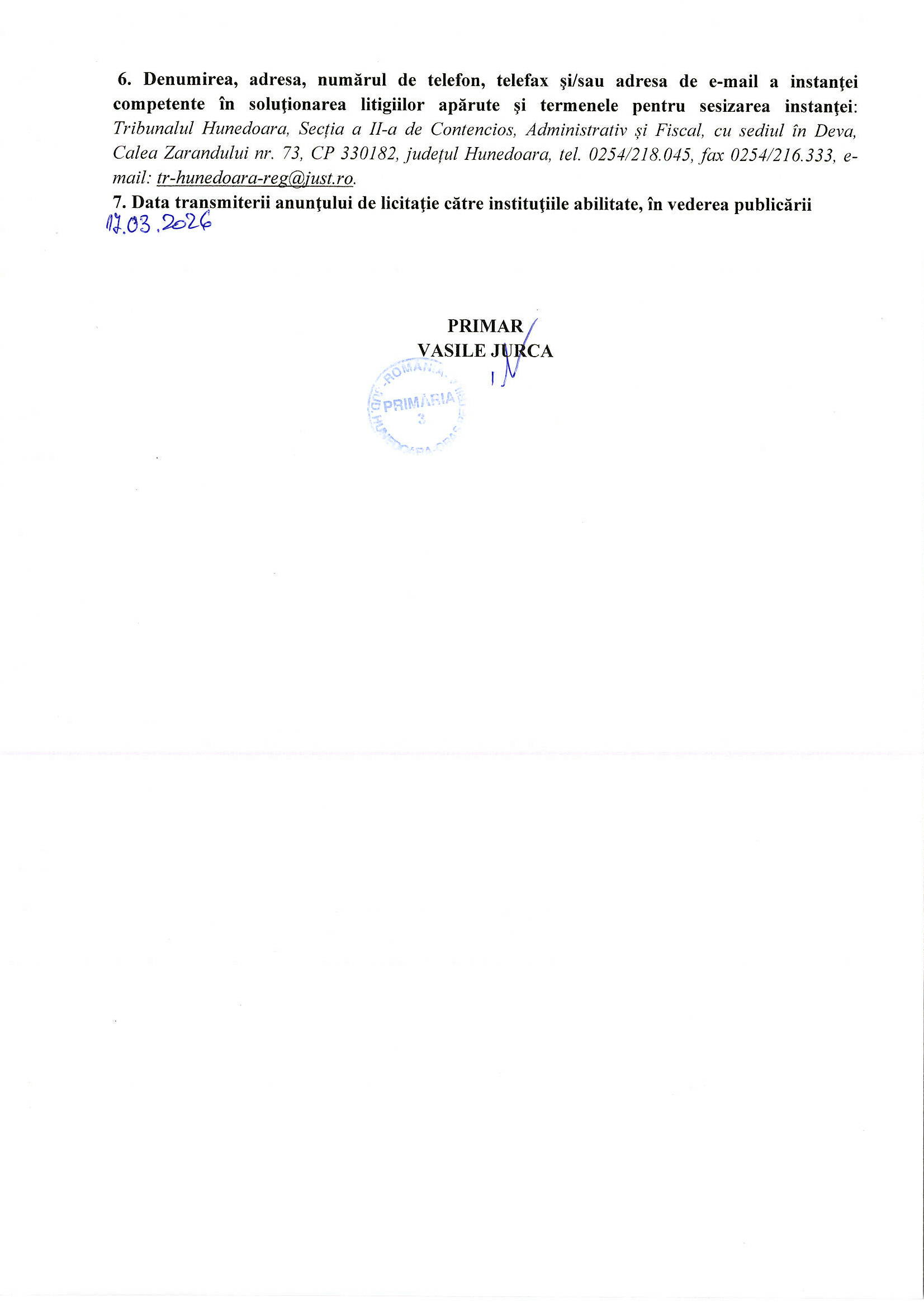 Licitatie publica 16.04.2026, ora 11.00
